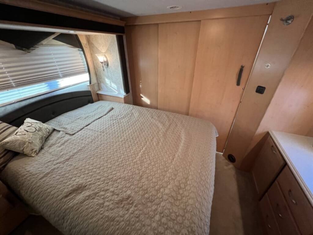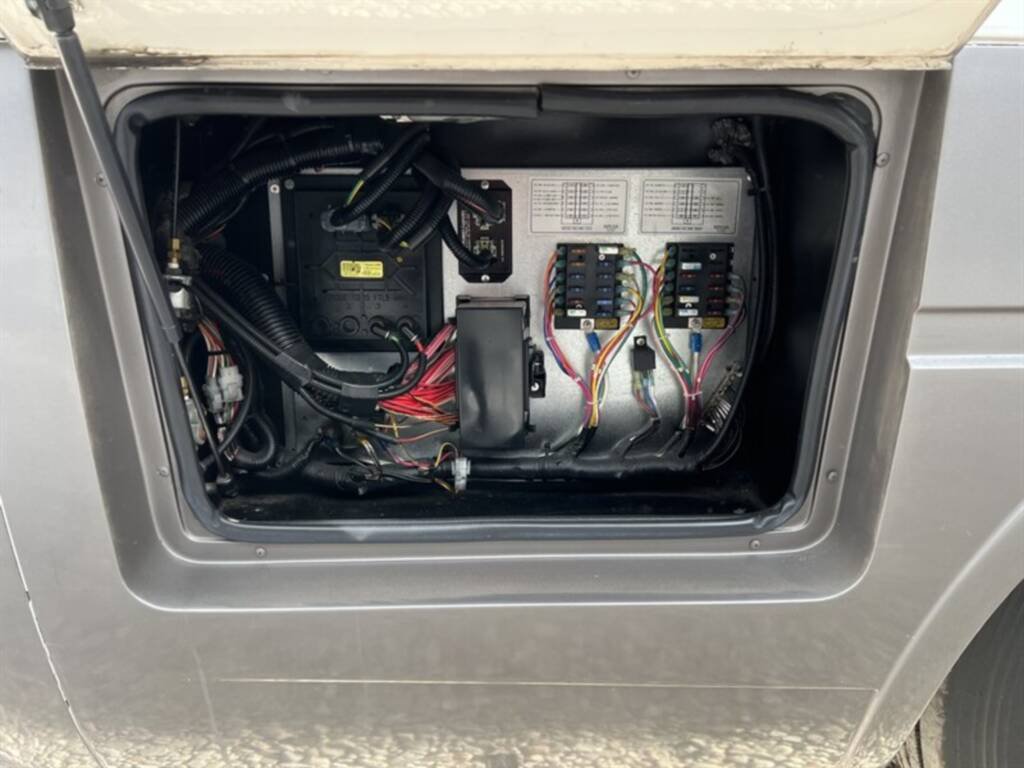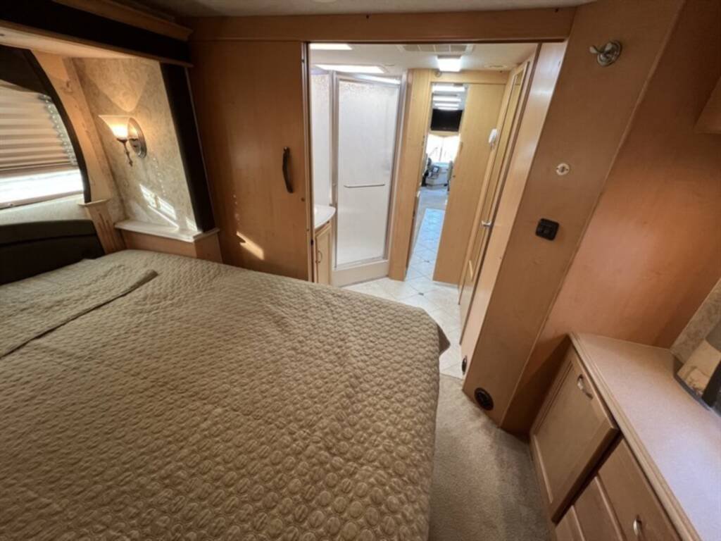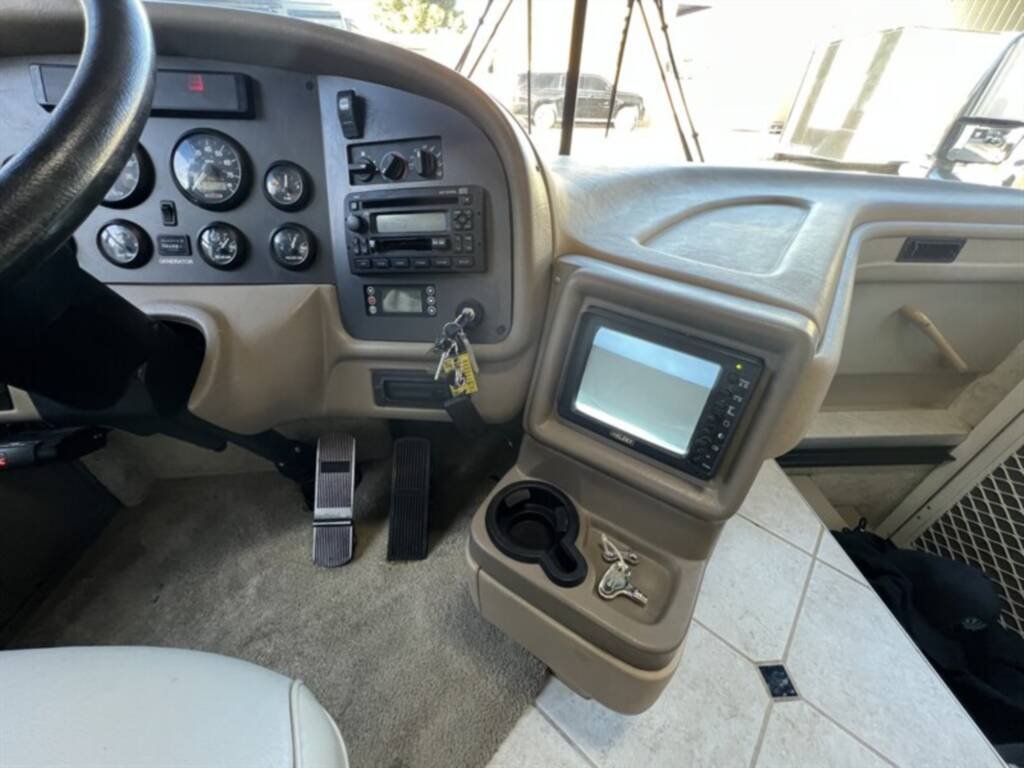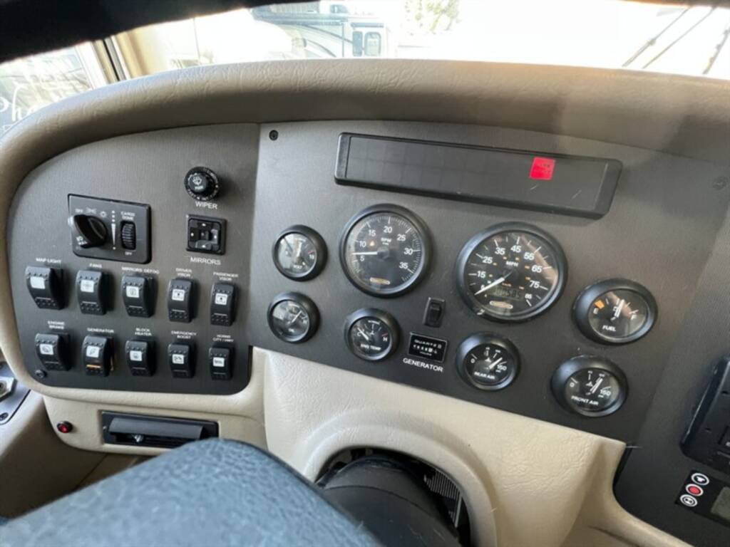 Powered by a Caterpillar C7 7.2L turbo diesel engine delivering 350 HP, paired with a 6-speed Allison transmission and rear-wheel drive, this motorhome offers smooth, powerful performance for long-distance travel. The 7,500-watt Onan Quiet Diesel generator powers appliances off-grid, supported by a 90-gallon fuel tank, 90-gallon freshwater tank, and propane system for the stove, water heater, and refrigerator. A rear vision system with a backup camera ensures safe maneuvering. The Duraframe steel subfloor construction and 50-amp detachable power cord add durability and convenience, while the house and chassis batteries are fully operational.