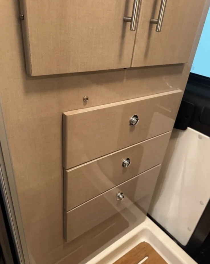 Ample cabinetry and under-bed storage